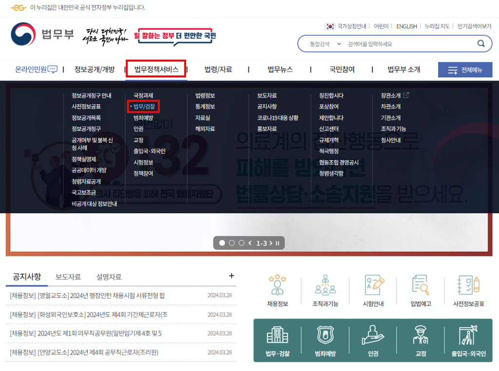법무부 ( https://www.moj.go.kr/moj/314/subview.do ) > 법무정책서비스 > 법무/검찰 > 주택임대차법령정보